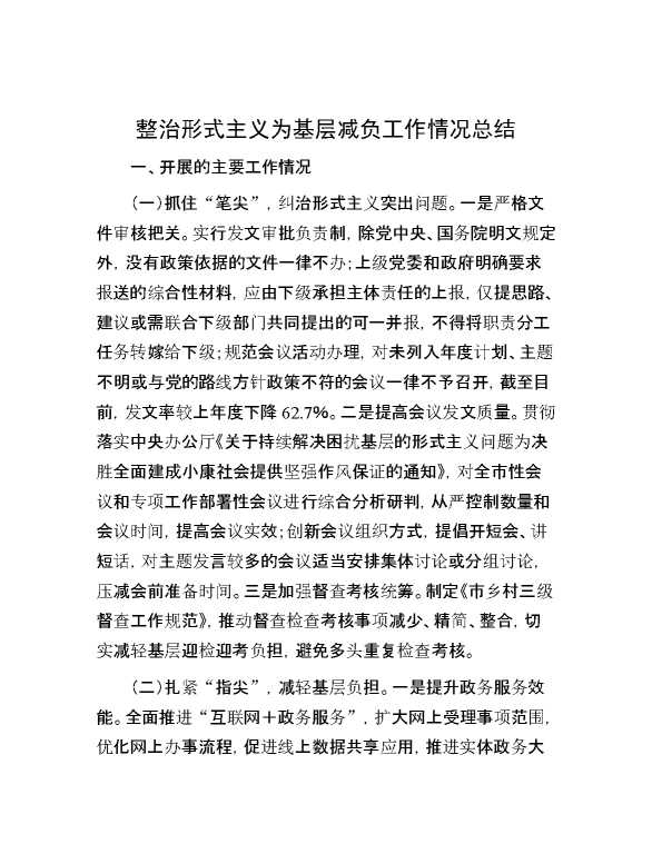 整治形式主义为基层减负工作情况总结 2024-10-15 Word模板 74 购买前,请一定要先点击这里看看,欢迎持续关注,精彩模板每天推送 预览结束,本文件为word文档,一共5页,共2487字,请购买后,下载后查看 购买前,请一定要先点击这里看看,欢迎持续关注,精彩模板每天推送 资源下载下载价格29 RMBVIP免费升级VIP点击检测网盘有效后购买有任何充值和下载问题请加微信:xuexixuexi66 0 总结汇报