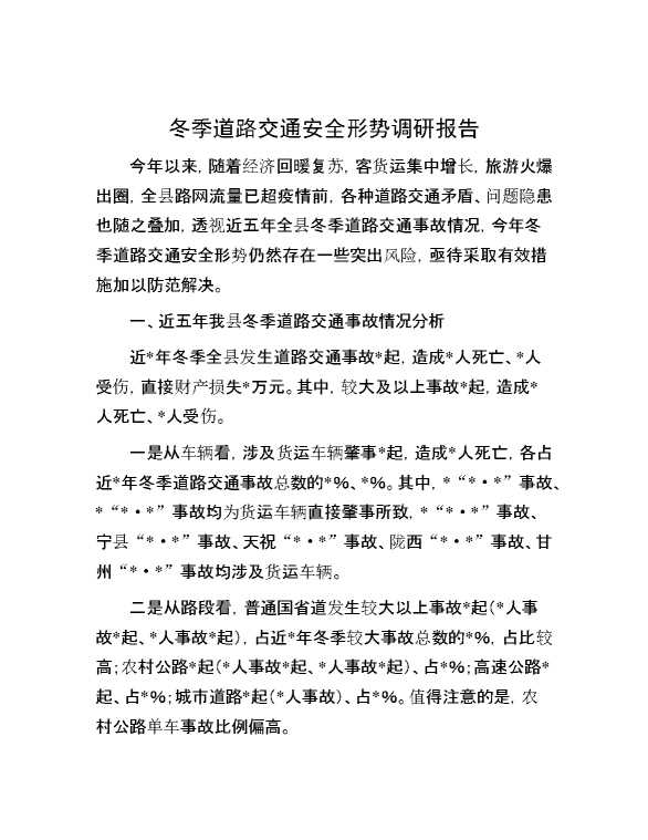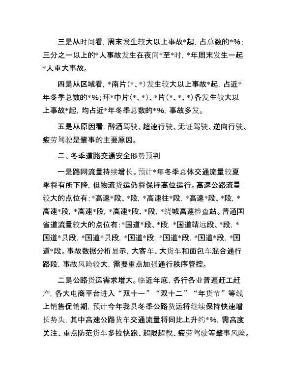 冬季道路交通安全形势调研报告 2024-10-15 Word模板 65 购买前,请一定要先点击这里看看,欢迎持续关注,精彩模板每天推送 预览结束,本文件为word文档,一共6页,共2464字,请购买后,下载后查看 购买前,请一定要先点击这里看看,欢迎持续关注,精彩模板每天推送 资源下载下载价格29 RMBVIP免费升级VIP点击检测网盘有效后购买有任何充值和下载问题请加微信:xuexixuexi66 0 总结汇报
