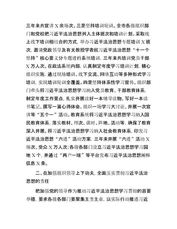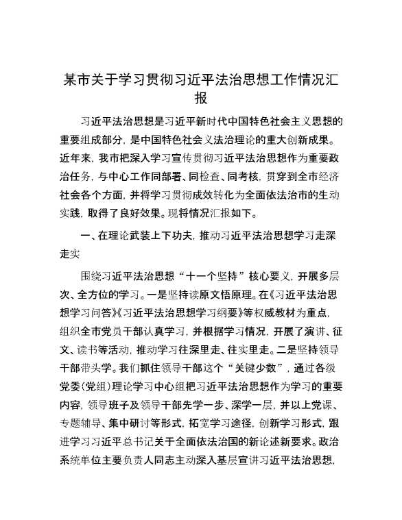 某市关于学习贯彻习近平法治思想工作情况汇报 2024-10-15 Word模板 63 购买前,请一定要先点击这里看看,欢迎持续关注,精彩模板每天推送 预览结束,本文件为word文档,一共6页,共3015字,请购买后,下载后查看 购买前,请一定要先点击这里看看,欢迎持续关注,精彩模板每天推送 资源下载下载价格29 RMBVIP免费升级VIP点击检测网盘有效后购买有任何充值和下载问题请加微信:xuexixuexi66 0 总结汇报