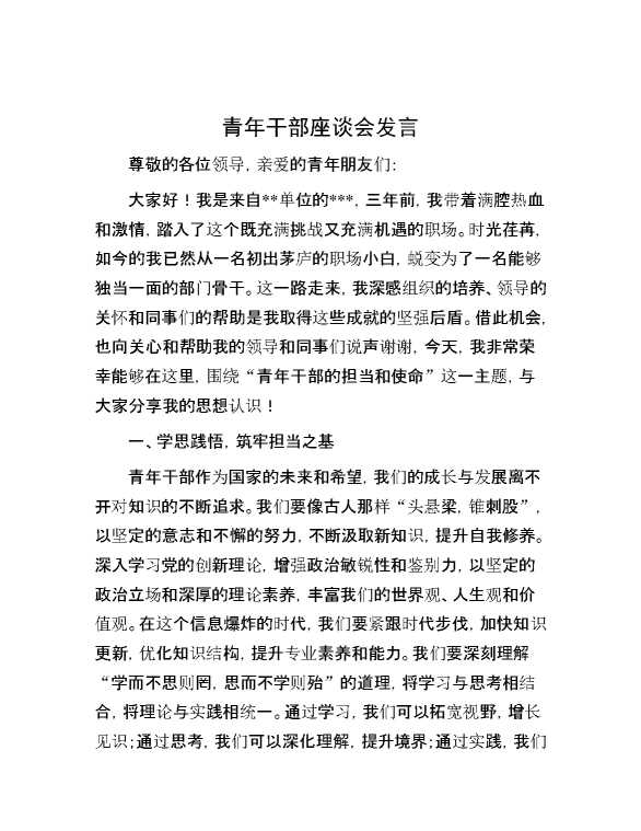 青年干部座谈会发言 2024-10-15 Word模板 66 购买前,请一定要先点击这里看看,欢迎持续关注,精彩模板每天推送 预览结束,本文件为word文档,一共4页,共1443字,请购买后,下载后查看 购买前,请一定要先点击这里看看,欢迎持续关注,精彩模板每天推送 资源下载下载价格29 RMBVIP免费升级VIP点击检测网盘有效后购买有任何充值和下载问题请加微信:xuexixuexi66 0 演讲发言