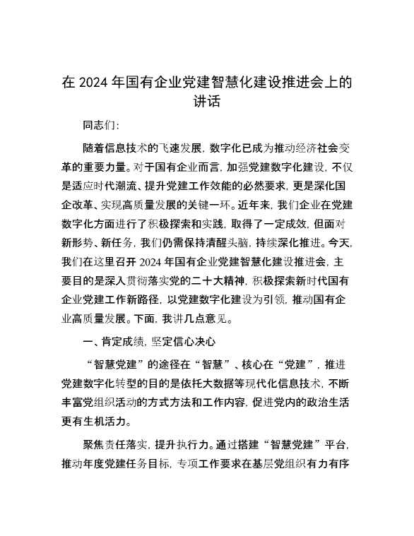 在2024年国有企业党建智慧化建设推进会上的讲话 2024-10-15 Word模板 76 购买前,请一定要先点击这里看看,欢迎持续关注,精彩模板每天推送 预览结束,本文件为word文档,一共5页,共2193字,请购买后,下载后查看 购买前,请一定要先点击这里看看,欢迎持续关注,精彩模板每天推送 资源下载下载价格29 RMBVIP免费升级VIP点击检测网盘有效后购买有任何充值和下载问题请加微信:xuexixuexi66 0 演讲发言
