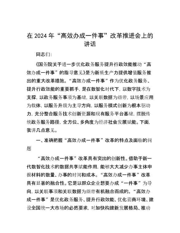 在2024年“高效办成一件事”改革推进会上的讲话 2024-10-15 Word模板 74 购买前,请一定要先点击这里看看,欢迎持续关注,精彩模板每天推送 预览结束,本文件为word文档,一共9页,共4604字,请购买后,下载后查看 购买前,请一定要先点击这里看看,欢迎持续关注,精彩模板每天推送 资源下载下载价格29 RMBVIP免费升级VIP点击检测网盘有效后购买有任何充值和下载问题请加微信:xuexixuexi66 0 演讲发言