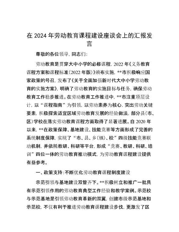 在2024年劳动教育课程建设座谈会上的汇报发言 2024-10-15 Word模板 66 购买前,请一定要先点击这里看看,欢迎持续关注,精彩模板每天推送 预览结束,本文件为word文档,一共8页,共3703字,请购买后,下载后查看 购买前,请一定要先点击这里看看,欢迎持续关注,精彩模板每天推送 资源下载下载价格29 RMBVIP免费升级VIP点击检测网盘有效后购买有任何充值和下载问题请加微信:xuexixuexi66 0 演讲发言