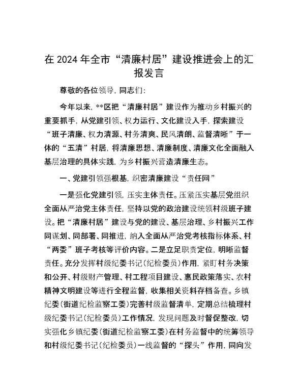 在2024年全市“清廉村居”建设推进会上的汇报发言 2024-10-15 Word模板 61 购买前,请一定要先点击这里看看,欢迎持续关注,精彩模板每天推送 预览结束,本文件为word文档,一共4页,共1596字,请购买后,下载后查看 购买前,请一定要先点击这里看看,欢迎持续关注,精彩模板每天推送 资源下载下载价格29 RMBVIP免费升级VIP点击检测网盘有效后购买有任何充值和下载问题请加微信:xuexixuexi66 0 演讲发言