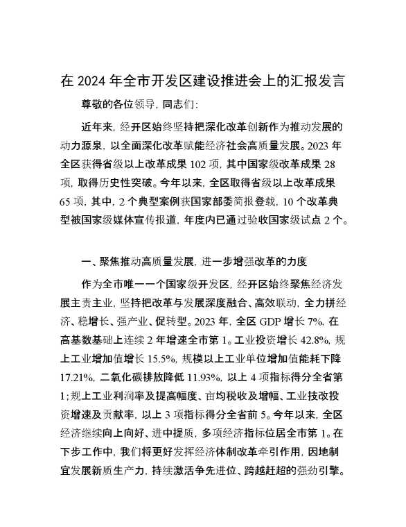 在2024年全市开发区建设推进会上的汇报发言 2024-10-15 Word模板 60 购买前,请一定要先点击这里看看,欢迎持续关注,精彩模板每天推送 预览结束,本文件为word文档,一共5页,共2145字,请购买后,下载后查看 购买前,请一定要先点击这里看看,欢迎持续关注,精彩模板每天推送 资源下载下载价格29 RMBVIP免费升级VIP点击检测网盘有效后购买有任何充值和下载问题请加微信:xuexixuexi66 0 演讲发言