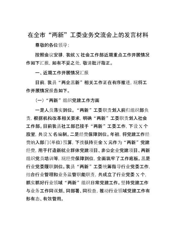在全市“两新”工委业务交流会上的发言材料 2024-10-15 Word模板 61 购买前,请一定要先点击这里看看,欢迎持续关注,精彩模板每天推送 预览结束,本文件为word文档,一共4页,共1489字,请购买后,下载后查看 购买前,请一定要先点击这里看看,欢迎持续关注,精彩模板每天推送 资源下载下载价格29 RMBVIP免费升级VIP点击检测网盘有效后购买有任何充值和下载问题请加微信:xuexixuexi66 0 演讲发言