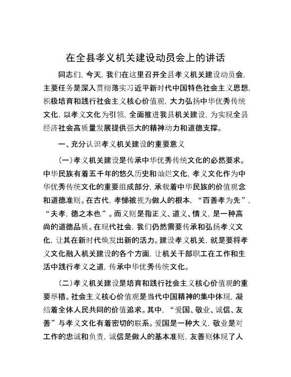 在全县孝义机关建设动员会上的讲话 2024-10-15 Word模板 67 购买前,请一定要先点击这里看看,欢迎持续关注,精彩模板每天推送 预览结束,本文件为word文档,一共6页,共2663字,请购买后,下载后查看 购买前,请一定要先点击这里看看,欢迎持续关注,精彩模板每天推送 资源下载下载价格29 RMBVIP免费升级VIP点击检测网盘有效后购买有任何充值和下载问题请加微信:xuexixuexi66 0 演讲发言