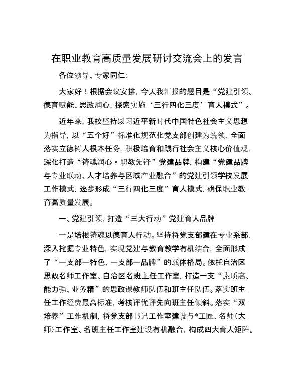 在职业教育高质量发展研讨交流会上的发言 2024-10-15 Word模板 65 购买前,请一定要先点击这里看看,欢迎持续关注,精彩模板每天推送 预览结束,本文件为word文档,一共6页,共2763字,请购买后,下载后查看 购买前,请一定要先点击这里看看,欢迎持续关注,精彩模板每天推送 资源下载下载价格29 RMBVIP免费升级VIP点击检测网盘有效后购买有任何充值和下载问题请加微信:xuexixuexi66 0 演讲发言