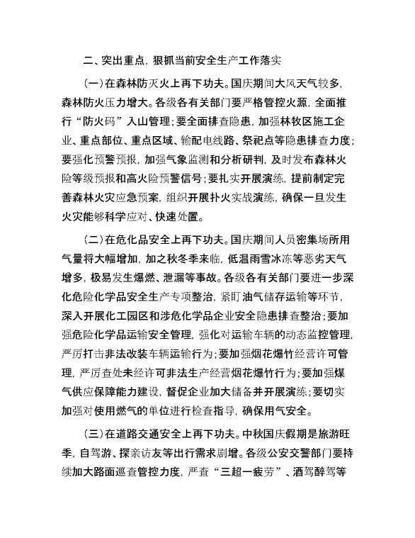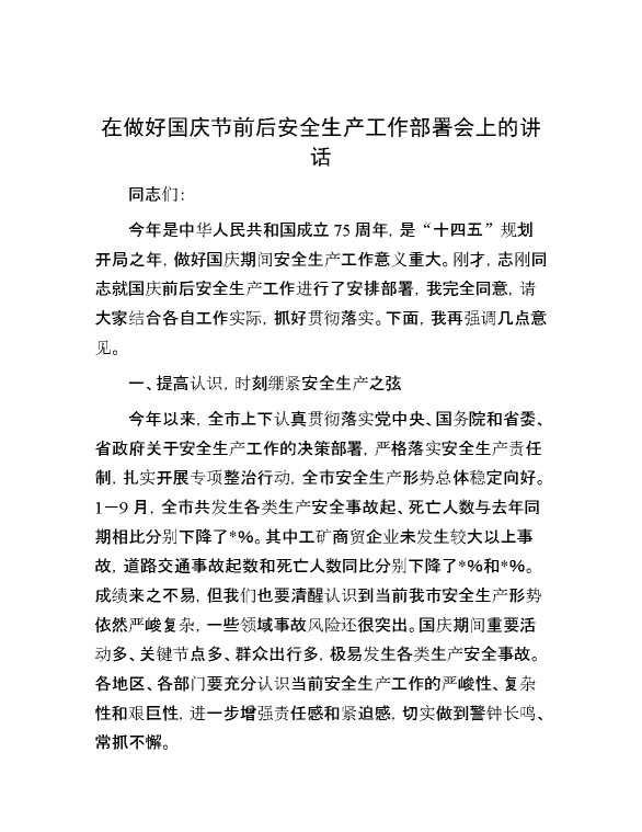 在做好国庆节前后安全生产工作部署会上的讲话 2024-10-15 Word模板 91 购买前,请一定要先点击这里看看,欢迎持续关注,精彩模板每天推送 预览结束,本文件为word文档,一共6页,共2543字,请购买后,下载后查看 购买前,请一定要先点击这里看看,欢迎持续关注,精彩模板每天推送 资源下载下载价格29 RMBVIP免费升级VIP点击检测网盘有效后购买有任何充值和下载问题请加微信:xuexixuexi66 0 演讲发言