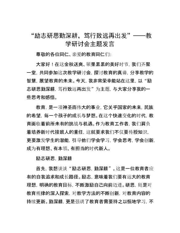 “励志研思勤深耕,笃行致远再出发”——教学研讨会主题发言 2024-10-15 Word模板 61 购买前,请一定要先点击这里看看,欢迎持续关注,精彩模板每天推送 预览结束,本文件为word文档,一共3页,共1238字,请购买后,下载后查看 购买前,请一定要先点击这里看看,欢迎持续关注,精彩模板每天推送 资源下载下载价格29 RMBVIP免费升级VIP点击检测网盘有效后购买有任何充值和下载问题请加微信:xuexixuexi66 0 演讲发言