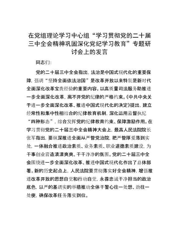 在党组理论学习中心组“学习贯彻党的二十届三中全会精神 巩固深化党纪学习教育”专题研讨会上的发言 2024-10-15 Word模板 68 购买前,请一定要先点击这里看看,欢迎持续关注,精彩模板每天推送 预览结束,本文件为word文档,一共5页,共2222字,请购买后,下载后查看 购买前,请一定要先点击这里看看,欢迎持续关注,精彩模板每天推送 资源下载下载价格29 RMBVIP免费升级VIP点击检测网盘有效后购买有任何充值和下载问题请加微信:xuexixuexi66 0 演讲发言