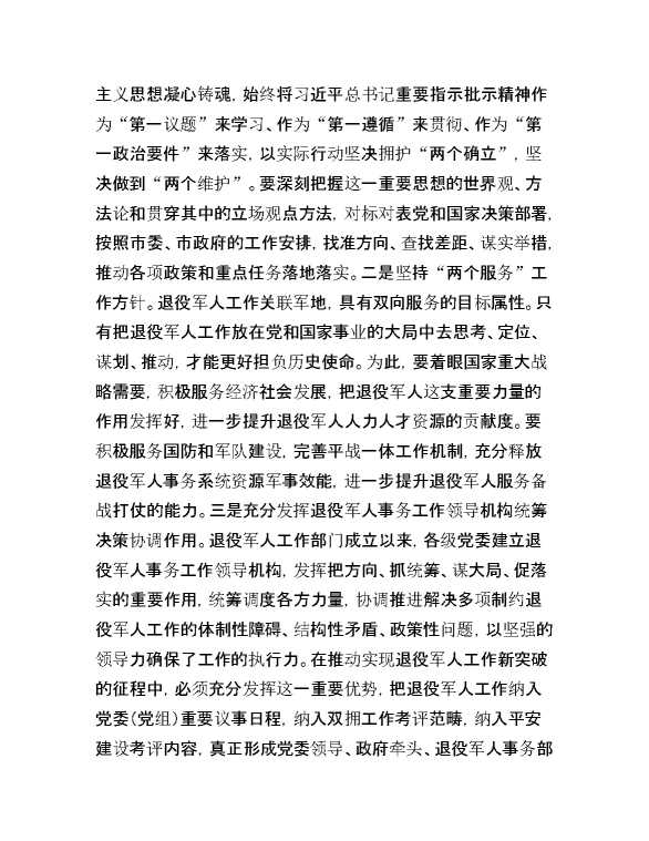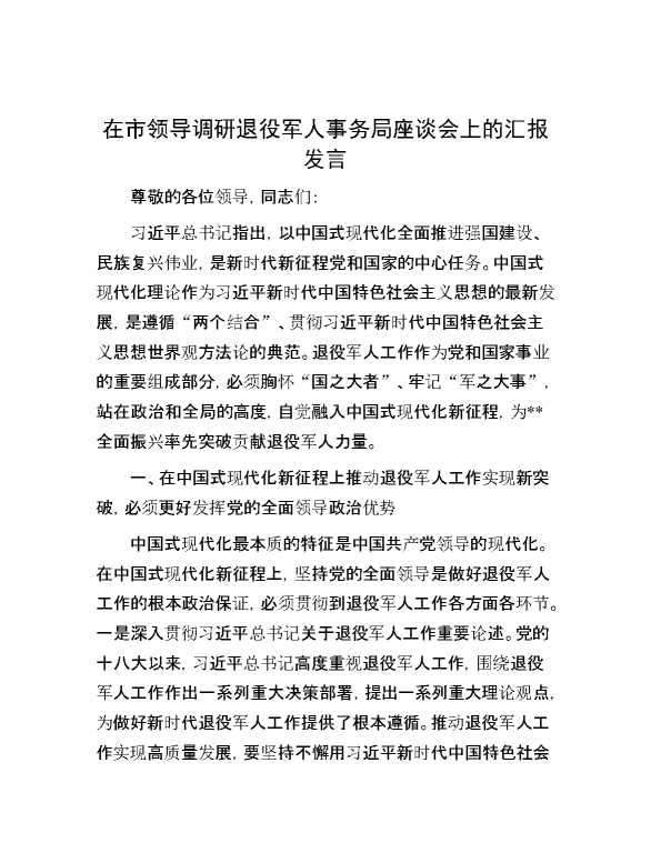 在市领导调研退役军人事务局座谈会上的汇报发言 2024-10-15 Word模板 90 购买前,请一定要先点击这里看看,欢迎持续关注,精彩模板每天推送 预览结束,本文件为word文档,一共7页,共3284字,请购买后,下载后查看 购买前,请一定要先点击这里看看,欢迎持续关注,精彩模板每天推送 资源下载下载价格29 RMBVIP免费升级VIP点击检测网盘有效后购买有任何充值和下载问题请加微信:xuexixuexi66 0 演讲发言