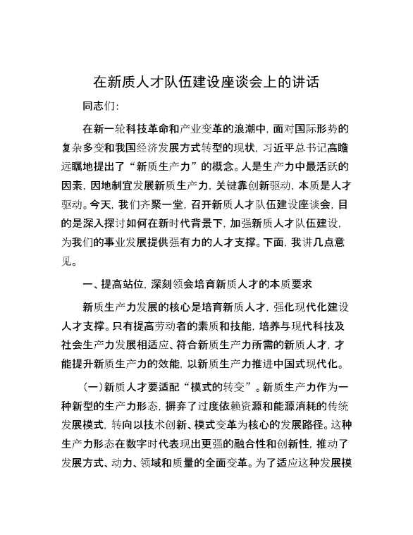 在新质人才队伍建设座谈会上的讲话 2024-10-15 Word模板 91 购买前,请一定要先点击这里看看,欢迎持续关注,精彩模板每天推送 预览结束,本文件为word文档,一共9页,共4530字,请购买后,下载后查看 购买前,请一定要先点击这里看看,欢迎持续关注,精彩模板每天推送 资源下载下载价格29 RMBVIP免费升级VIP点击检测网盘有效后购买有任何充值和下载问题请加微信:xuexixuexi66 0 演讲发言