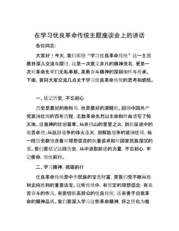 在学习优良革命传统主题座谈会上的讲话 2024-10-15 Word模板 94 购买前,请一定要先点击这里看看,欢迎持续关注,精彩模板每天推送 预览结束,本文件为word文档,一共3页,共939字,请购买后,下载后查看 购买前,请一定要先点击这里看看,欢迎持续关注,精彩模板每天推送 资源下载下载价格29 RMBVIP免费升级VIP点击检测网盘有效后购买有任何充值和下载问题请加微信:xuexixuexi66 0 演讲发言