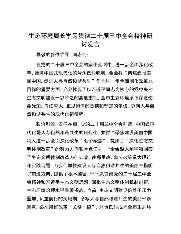生态环境局长学习贯彻二十届三中全会精神研讨发言 2024-10-15 Word模板 91 购买前,请一定要先点击这里看看,欢迎持续关注,精彩模板每天推送 预览结束,本文件为word文档,一共3页,共1279字,请购买后,下载后查看 购买前,请一定要先点击这里看看,欢迎持续关注,精彩模板每天推送 资源下载下载价格29 RMBVIP免费升级VIP点击检测网盘有效后购买有任何充值和下载问题请加微信:xuexixuexi66 0 演讲发言