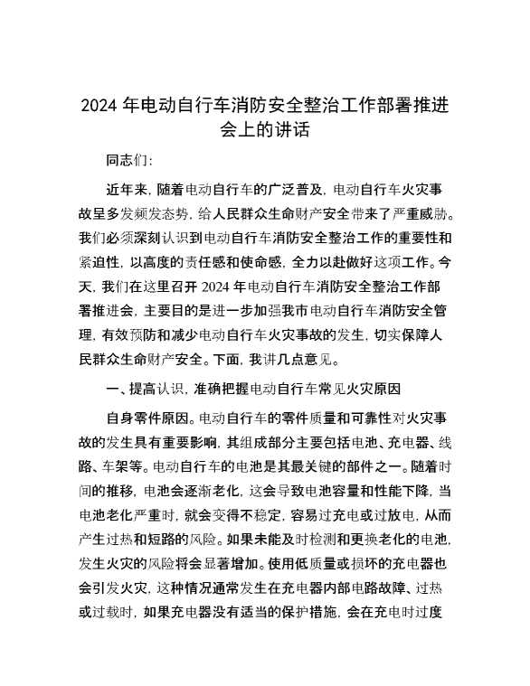 2024年电动自行车消防安全整治工作部署推进会上的讲话 2024-10-15 Word模板 134 购买前,请一定要先点击这里看看,欢迎持续关注,精彩模板每天推送 预览结束,本文件为word文档,一共10页,共5015字,请购买后,下载后查看 购买前,请一定要先点击这里看看,欢迎持续关注,精彩模板每天推送 资源下载下载价格29 RMBVIP免费升级VIP点击检测网盘有效后购买有任何充值和下载问题请加微信:xuexixuexi66 0 演讲发言