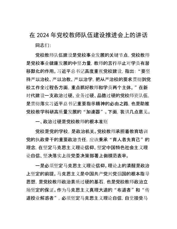 在2024年党校教师队伍建设推进会上的讲话 2024-10-15 Word模板 102 购买前,请一定要先点击这里看看,欢迎持续关注,精彩模板每天推送 预览结束,本文件为word文档,一共6页,共2876字,请购买后,下载后查看 购买前,请一定要先点击这里看看,欢迎持续关注,精彩模板每天推送 资源下载下载价格29 RMBVIP免费升级VIP点击检测网盘有效后购买有任何充值和下载问题请加微信:xuexixuexi66 0 演讲发言