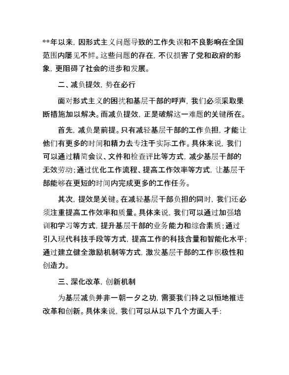整治形式主义为基层减负研讨发言 2024-10-15 Word模板 104 购买前,请一定要先点击这里看看,欢迎持续关注,精彩模板每天推送 预览结束,本文件为word文档,一共4页,共1491字,请购买后,下载后查看 购买前,请一定要先点击这里看看,欢迎持续关注,精彩模板每天推送 资源下载下载价格29 RMBVIP免费升级VIP点击检测网盘有效后购买有任何充值和下载问题请加微信:xuexixuexi66 0 演讲发言