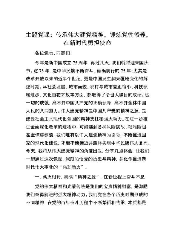 主题党课:传承伟大建党精神,锤炼党性修养,在新时代勇担使命 2024-10-15 Word模板 96 购买前,请一定要先点击这里看看,欢迎持续关注,精彩模板每天推送 预览结束,本文件为word文档,一共12页,共6074字,请购买后,下载后查看 购买前,请一定要先点击这里看看,欢迎持续关注,精彩模板每天推送 资源下载下载价格29 RMBVIP免费升级VIP立即购买有任何充值和下载问题请加微信:xuexixuexi66 0 党课及生活会