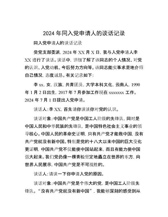 2024年同入党申请人的谈话记录 2024-10-15 Word模板 98 购买前,请一定要先点击这里看看,欢迎持续关注,精彩模板每天推送 预览结束,本文件为word文档,一共3页,共1009字,请购买后,下载后查看 购买前,请一定要先点击这里看看,欢迎持续关注,精彩模板每天推送 资源下载下载价格29 RMBVIP免费升级VIP点击检测网盘有效后购买有任何充值和下载问题请加微信:xuexixuexi66 0 党课及生活会