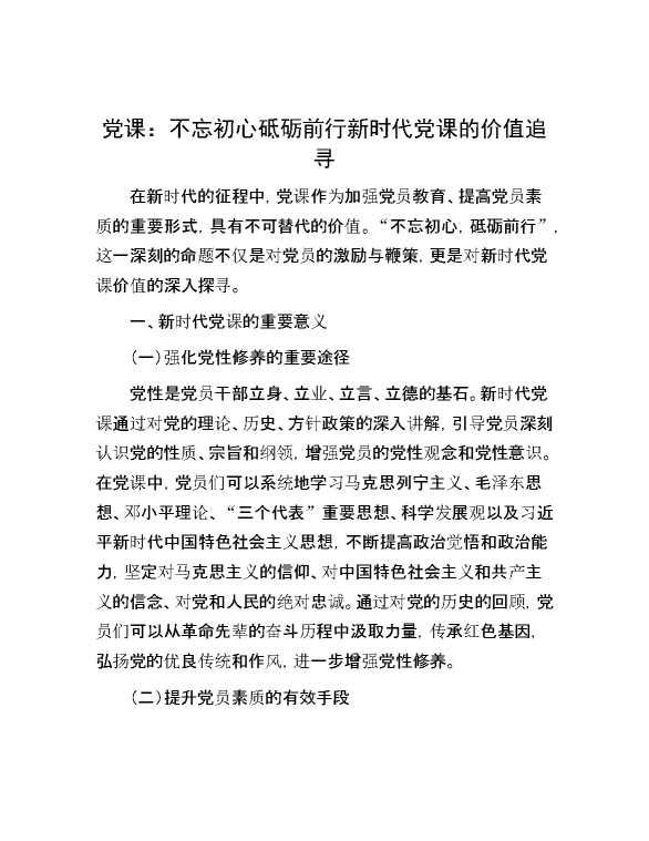 党课:不忘初心 砥砺前行 新时代党课的价值追寻 2024-10-15 Word模板 93 购买前,请一定要先点击这里看看,欢迎持续关注,精彩模板每天推送 预览结束,本文件为word文档,一共6页,共2724字,请购买后,下载后查看 购买前,请一定要先点击这里看看,欢迎持续关注,精彩模板每天推送 资源下载下载价格29 RMBVIP免费升级VIP点击检测网盘有效后购买有任何充值和下载问题请加微信:xuexixuexi66 0 党课及生活会