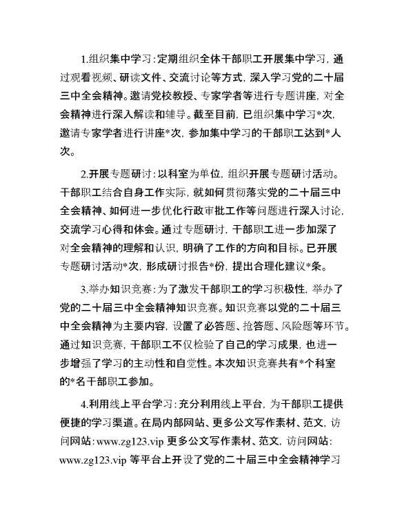 行政审批局学习贯彻党的二十届三中全会精神情况报告 2024-10-21 Word模板 67 购买前,请一定要先点击这里看看,欢迎持续关注,精彩模板每天推送 预览结束,本文件为word文档,一共8页,共3688字,请购买后,下载后查看 购买前,请一定要先点击这里看看,欢迎持续关注,精彩模板每天推送 资源下载下载价格29 RMBVIP免费升级VIP点击检测网盘有效后购买有任何充值和下载问题请加微信:xuexixuexi66 0 总结汇报