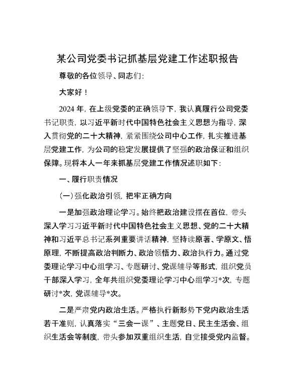 某公司党委书记抓基层党建工作述职报告 2024-10-21 Word模板 75 购买前,请一定要先点击这里看看,欢迎持续关注,精彩模板每天推送 预览结束,本文件为word文档,一共8页,共3396字,请购买后,下载后查看 购买前,请一定要先点击这里看看,欢迎持续关注,精彩模板每天推送 资源下载下载价格29 RMBVIP免费升级VIP点击检测网盘有效后购买有任何充值和下载问题请加微信:xuexixuexi66 0 总结汇报
