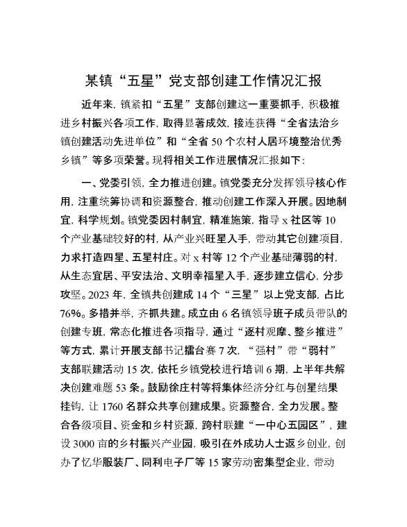 某镇“五星”党支部创建工作情况汇报 2024-10-21 Word模板 74 购买前,请一定要先点击这里看看,欢迎持续关注,精彩模板每天推送 预览结束,本文件为word文档,一共3页,共1502字,请购买后,下载后查看 购买前,请一定要先点击这里看看,欢迎持续关注,精彩模板每天推送 资源下载下载价格29 RMBVIP免费升级VIP点击检测网盘有效后购买有任何充值和下载问题请加微信:xuexixuexi66 0 总结汇报