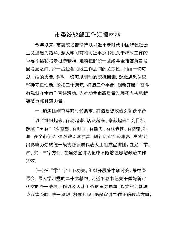 市委统战部工作汇报材料 2024-10-21 Word模板 80 购买前,请一定要先点击这里看看,欢迎持续关注,精彩模板每天推送 预览结束,本文件为word文档,一共5页,共2056字,请购买后,下载后查看 购买前,请一定要先点击这里看看,欢迎持续关注,精彩模板每天推送 资源下载下载价格29 RMBVIP免费升级VIP点击检测网盘有效后购买有任何充值和下载问题请加微信:xuexixuexi66 0 总结汇报