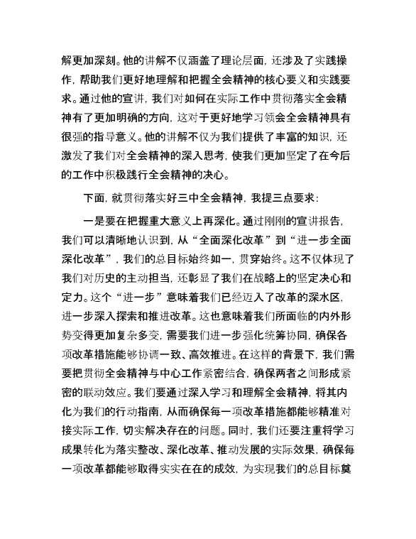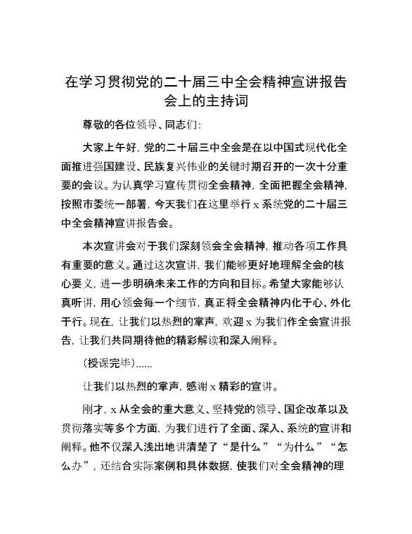 在学习贯彻党的二十届三中全会精神宣讲报告会上的主持词 2024-10-21 Word模板 76 购买前,请一定要先点击这里看看,欢迎持续关注,精彩模板每天推送 预览结束,本文件为word文档,一共4页,共1478字,请购买后,下载后查看 购买前,请一定要先点击这里看看,欢迎持续关注,精彩模板每天推送 资源下载下载价格29 RMBVIP免费升级VIP点击检测网盘有效后购买有任何充值和下载问题请加微信:xuexixuexi66 0 总结汇报