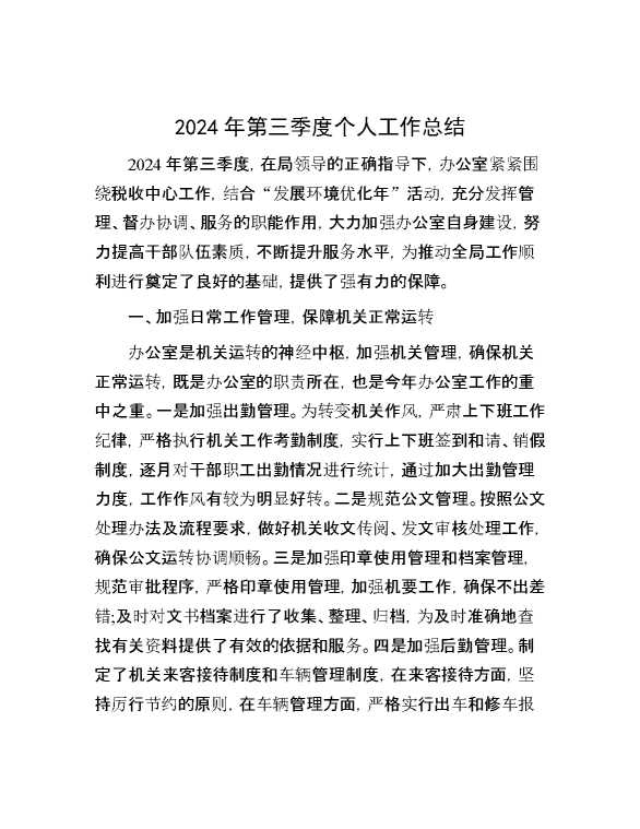 2024年第三季度个人工作总结 2024-10-21 Word模板 91 购买前,请一定要先点击这里看看,欢迎持续关注,精彩模板每天推送 预览结束,本文件为word文档,一共3页,共1434字,请购买后,下载后查看 购买前,请一定要先点击这里看看,欢迎持续关注,精彩模板每天推送 资源下载下载价格29 RMBVIP免费升级VIP点击检测网盘有效后购买有任何充值和下载问题请加微信:xuexixuexi66 0 总结汇报