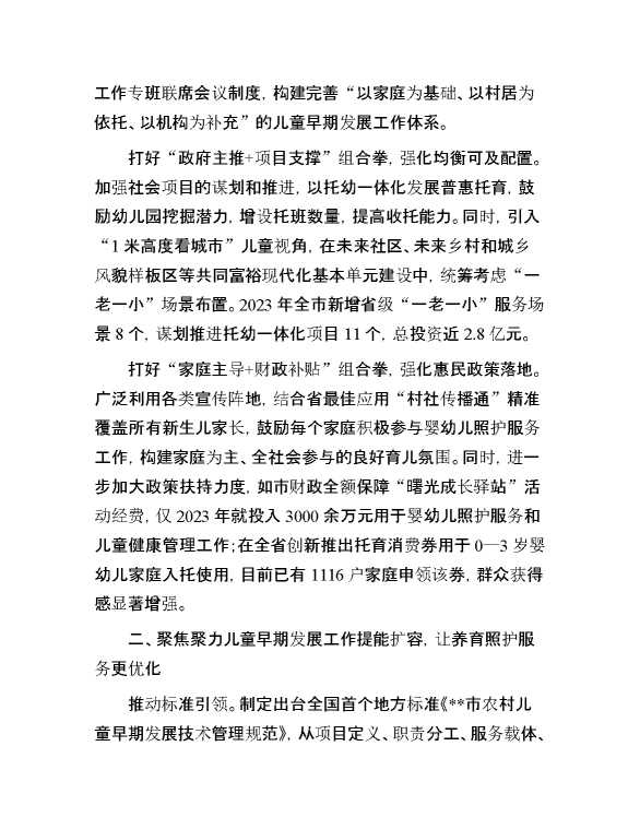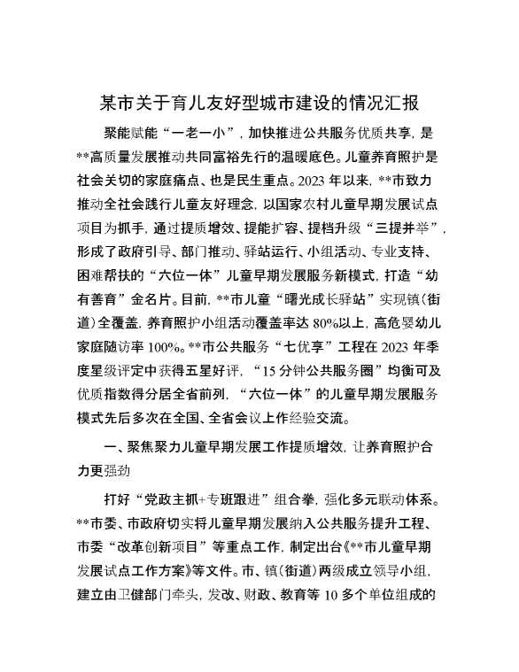 某市关于育儿友好型城市建设的情况汇报 2024-10-21 Word模板 120 购买前,请一定要先点击这里看看,欢迎持续关注,精彩模板每天推送 预览结束,本文件为word文档,一共4页,共1819字,请购买后,下载后查看 购买前,请一定要先点击这里看看,欢迎持续关注,精彩模板每天推送 资源下载下载价格29 RMBVIP免费升级VIP点击检测网盘有效后购买有任何充值和下载问题请加微信:xuexixuexi66 0 总结汇报