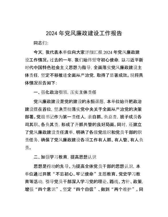 2024年党风廉政建设工作报告 2024-10-21 Word模板 96 购买前,请一定要先点击这里看看,欢迎持续关注,精彩模板每天推送 预览结束,本文件为word文档,一共3页,共1225字,请购买后,下载后查看 购买前,请一定要先点击这里看看,欢迎持续关注,精彩模板每天推送 资源下载下载价格29 RMBVIP免费升级VIP点击检测网盘有效后购买有任何充值和下载问题请加微信:xuexixuexi66 0 总结汇报