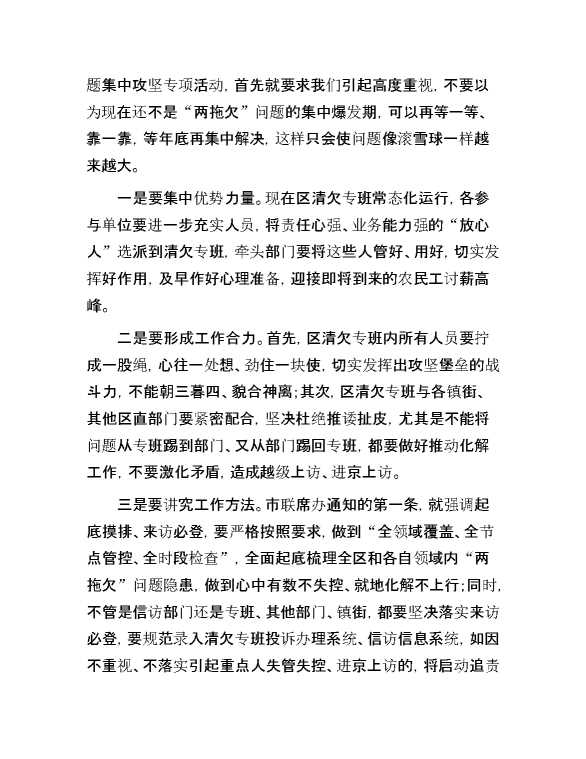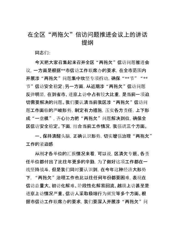 在全区“两拖欠”信访问题推进会议上的讲话提纲 2024-10-21 Word模板 93 购买前,请一定要先点击这里看看,欢迎持续关注,精彩模板每天推送 预览结束,本文件为word文档,一共6页,共2858字,请购买后,下载后查看 购买前,请一定要先点击这里看看,欢迎持续关注,精彩模板每天推送 资源下载下载价格29 RMBVIP免费升级VIP点击检测网盘有效后购买有任何充值和下载问题请加微信:xuexixuexi66 0 演讲发言