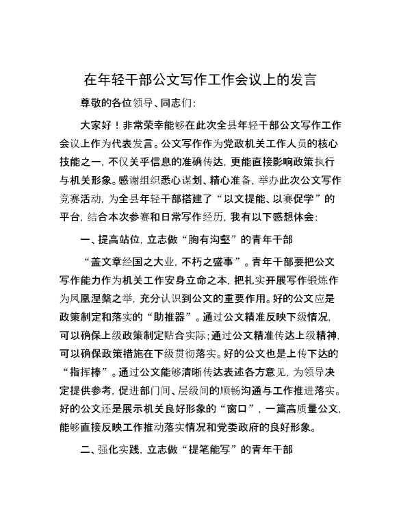 在年轻干部公文写作工作会议上的发言 2024-10-22 Word模板 87 购买前,请一定要先点击这里看看,欢迎持续关注,精彩模板每天推送 预览结束,本文件为word文档,一共3页,共1153字,请购买后,下载后查看 购买前,请一定要先点击这里看看,欢迎持续关注,精彩模板每天推送 资源下载下载价格29 RMBVIP免费升级VIP点击检测网盘有效后购买有任何充值和下载问题请加微信:xuexixuexi66 0 演讲发言