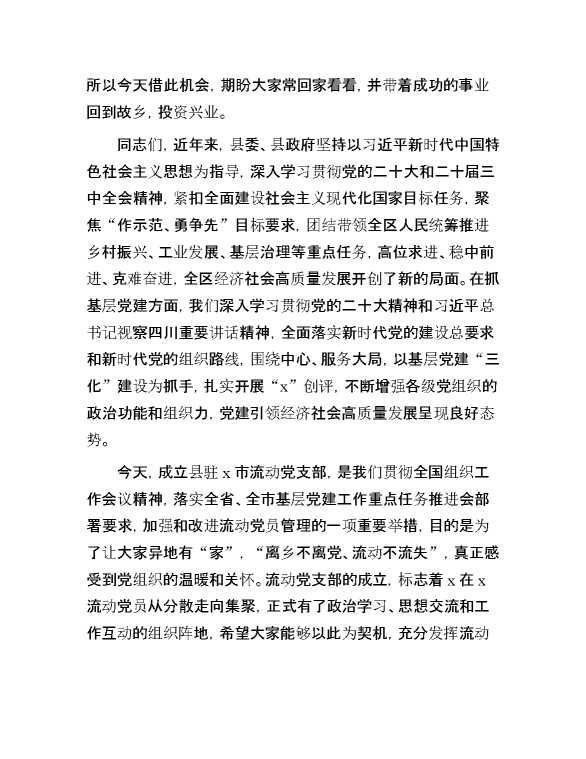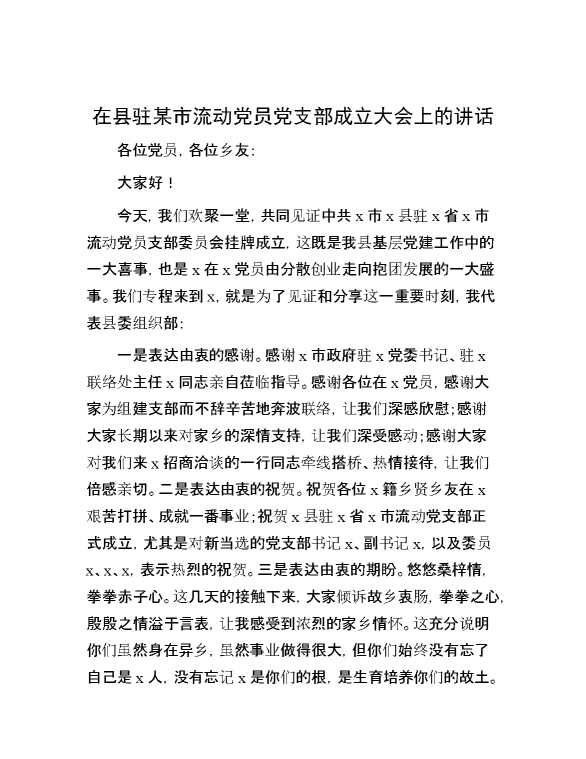 在县驻某市流动党员党支部成立大会上的讲话 2024-10-22 Word模板 86 购买前,请一定要先点击这里看看,欢迎持续关注,精彩模板每天推送 预览结束,本文件为word文档,一共5页,共1963字,请购买后,下载后查看 购买前,请一定要先点击这里看看,欢迎持续关注,精彩模板每天推送 资源下载下载价格29 RMBVIP免费升级VIP点击检测网盘有效后购买有任何充值和下载问题请加微信:xuexixuexi66 0 演讲发言