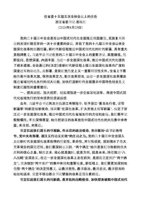 浙江省委书记易炼红:在省委十五届五次全体会议上的报告 2024-10-22 Word模板 79 购买前,请一定要先点击这里看看,欢迎持续关注,精彩模板每天推送 预览结束,本文件为word文档,一共6页,共4767字,请购买后,下载后查看 购买前,请一定要先点击这里看看,欢迎持续关注,精彩模板每天推送 资源下载下载价格29 RMBVIP免费升级VIP点击检测网盘有效后购买有任何充值和下载问题请加微信:xuexixuexi66 0 演讲发言