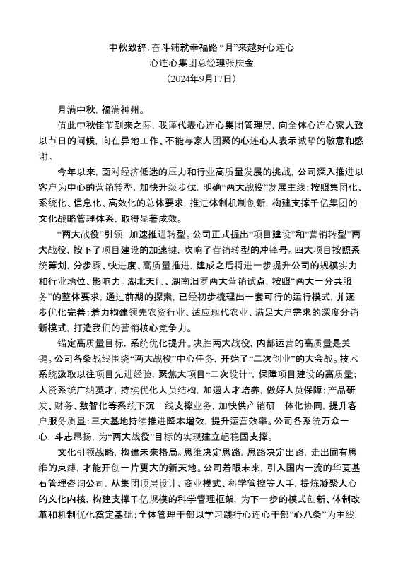 心连心集团总经理张庆金:中秋致辞:奋斗铺就幸福路“月”来越好心连心 2024-10-22 Word模板 79 购买前,请一定要先点击这里看看,欢迎持续关注,精彩模板每天推送 预览结束,本文件为word文档,一共2页,共1020字,请购买后,下载后查看 购买前,请一定要先点击这里看看,欢迎持续关注,精彩模板每天推送 资源下载下载价格29 RMBVIP免费升级VIP点击检测网盘有效后购买有任何充值和下载问题请加微信:xuexixuexi66 0 演讲发言