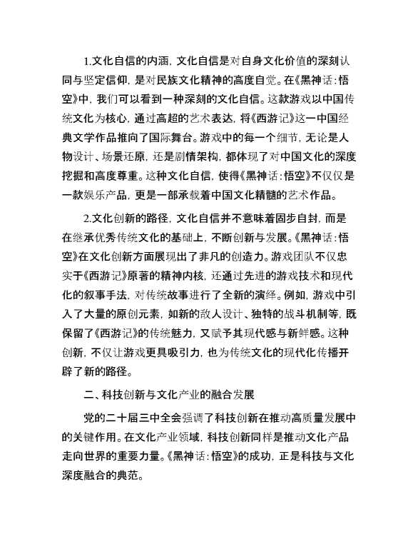 三中全会专题党课:从《黑神话:悟空》的爆火中领悟三中全会精神 2024-10-22 Word模板 81 购买前,请一定要先点击这里看看,欢迎持续关注,精彩模板每天推送 预览结束,本文件为word文档,一共7页,共3274字,请购买后,下载后查看 购买前,请一定要先点击这里看看,欢迎持续关注,精彩模板每天推送 资源下载下载价格29 RMBVIP免费升级VIP点击检测网盘有效后购买有任何充值和下载问题请加微信:xuexixuexi66 0 党课及生活会