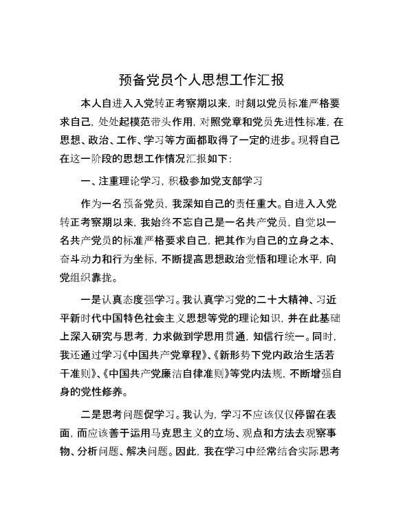 预备党员个人思想工作汇报 2024-10-22 Word模板 92 购买前,请一定要先点击这里看看,欢迎持续关注,精彩模板每天推送 预览结束,本文件为word文档,一共6页,共2792字,请购买后,下载后查看 购买前,请一定要先点击这里看看,欢迎持续关注,精彩模板每天推送 资源下载下载价格29 RMBVIP免费升级VIP立即购买有任何充值和下载问题请加微信:xuexixuexi66 0 党课及生活会