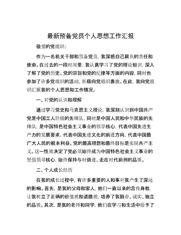 最新预备党员个人思想工作汇报 2024-10-22 Word模板 93 购买前,请一定要先点击这里看看,欢迎持续关注,精彩模板每天推送 预览结束,本文件为word文档,一共3页,共1218字,请购买后,下载后查看 购买前,请一定要先点击这里看看,欢迎持续关注,精彩模板每天推送 资源下载下载价格29 RMBVIP免费升级VIP点击检测网盘有效后购买有任何充值和下载问题请加微信:xuexixuexi66 0 党课及生活会