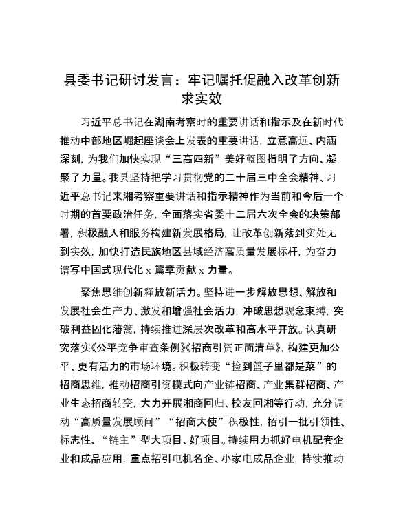 县委书记研讨发言:牢记嘱托促融入 改革创新求实效 2024-10-23 Word模板 81 购买前,请一定要先点击这里看看,欢迎持续关注,精彩模板每天推送 预览结束,本文件为word文档,一共4页,共1945字,请购买后,下载后查看 购买前,请一定要先点击这里看看,欢迎持续关注,精彩模板每天推送 资源下载下载价格29 RMBVIP免费升级VIP点击检测网盘有效后购买有任何充值和下载问题请加微信:xuexixuexi66 0 演讲发言