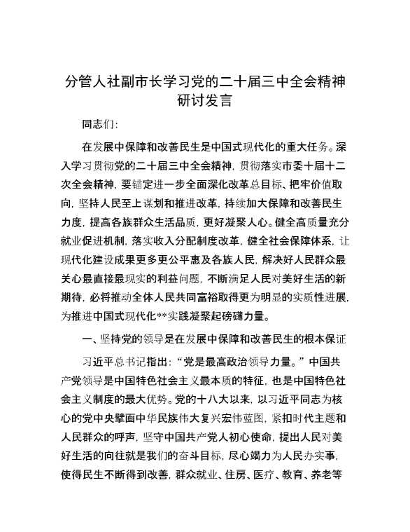 分管人社副市长学习党的二十届三中全会精神研讨发言 2024-10-23 Word模板 88 购买前,请一定要先点击这里看看,欢迎持续关注,精彩模板每天推送 预览结束,本文件为word文档,一共6页,共2787字,请购买后,下载后查看 购买前,请一定要先点击这里看看,欢迎持续关注,精彩模板每天推送 资源下载下载价格29 RMBVIP免费升级VIP点击检测网盘有效后购买有任何充值和下载问题请加微信:xuexixuexi66 0 演讲发言