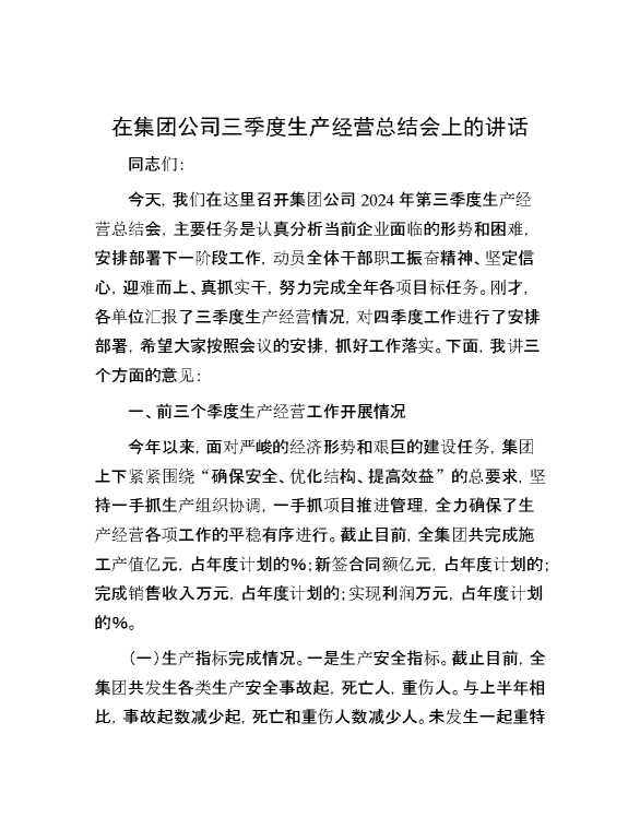 在集团公司三季度生产经营总结会上的讲话 2024-10-23 Word模板 95 购买前,请一定要先点击这里看看,欢迎持续关注,精彩模板每天推送 预览结束,本文件为word文档,一共6页,共2945字,请购买后,下载后查看 购买前,请一定要先点击这里看看,欢迎持续关注,精彩模板每天推送 资源下载下载价格29 RMBVIP免费升级VIP点击检测网盘有效后购买有任何充值和下载问题请加微信:xuexixuexi66 0 演讲发言