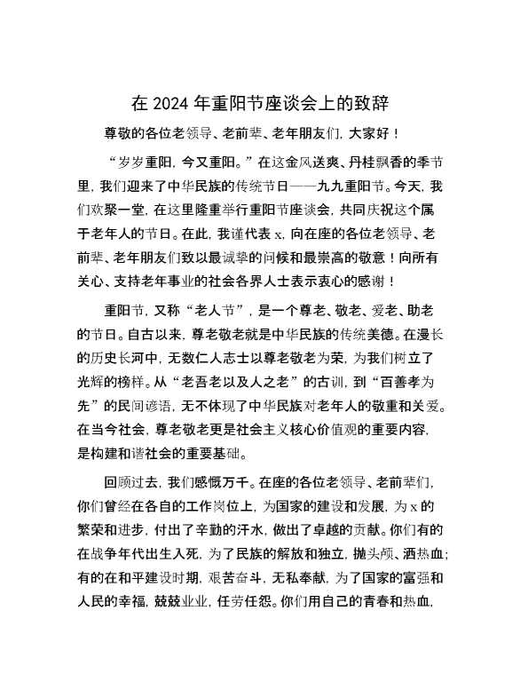 在2024年重阳节座谈会上的致辞 2024-10-23 Word模板 93 购买前,请一定要先点击这里看看,欢迎持续关注,精彩模板每天推送 预览结束,本文件为word文档,一共4页,共1655字,请购买后,下载后查看 购买前,请一定要先点击这里看看,欢迎持续关注,精彩模板每天推送 资源下载下载价格29 RMBVIP免费升级VIP点击检测网盘有效后购买有任何充值和下载问题请加微信:xuexixuexi66 0 演讲发言
