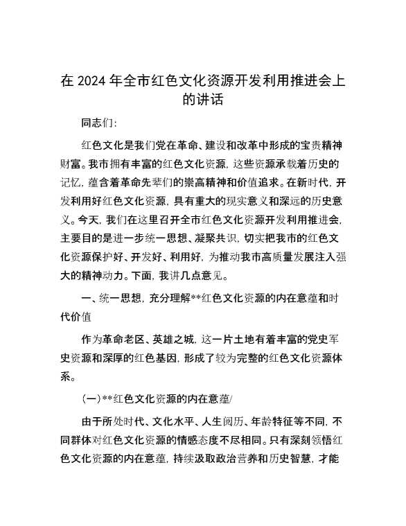 在2024年全市红色文化资源开发利用推进会上的讲话 2024-10-23 Word模板 83 购买前,请一定要先点击这里看看,欢迎持续关注,精彩模板每天推送 预览结束,本文件为word文档,一共13页,共6402字,请购买后,下载后查看 购买前,请一定要先点击这里看看,欢迎持续关注,精彩模板每天推送 资源下载下载价格29 RMBVIP免费升级VIP点击检测网盘有效后购买有任何充值和下载问题请加微信:xuexixuexi66 0 演讲发言
