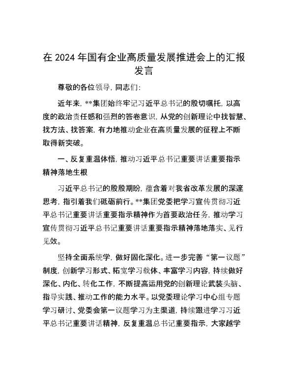 在2024年国有企业高质量发展推进会上的汇报发言 2024-10-23 Word模板 85 购买前,请一定要先点击这里看看,欢迎持续关注,精彩模板每天推送 预览结束,本文件为word文档,一共7页,共3250字,请购买后,下载后查看 购买前,请一定要先点击这里看看,欢迎持续关注,精彩模板每天推送 资源下载下载价格29 RMBVIP免费升级VIP点击检测网盘有效后购买有任何充值和下载问题请加微信:xuexixuexi66 0 演讲发言