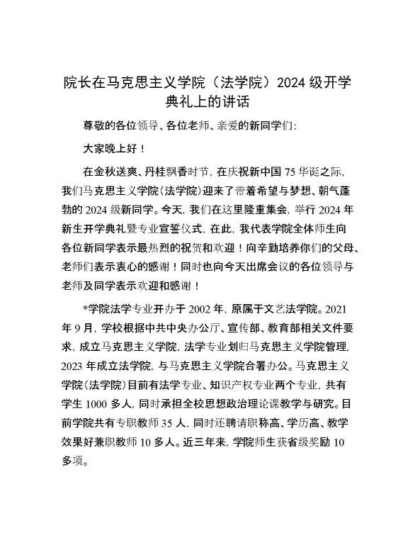 院长在马克思主义学院(法学院)2024级开学典礼上的讲话 2024-10-23 Word模板 89 购买前,请一定要先点击这里看看,欢迎持续关注,精彩模板每天推送 预览结束,本文件为word文档,一共7页,共3361字,请购买后,下载后查看 购买前,请一定要先点击这里看看,欢迎持续关注,精彩模板每天推送 资源下载下载价格29 RMBVIP免费升级VIP点击检测网盘有效后购买有任何充值和下载问题请加微信:xuexixuexi66 0 演讲发言