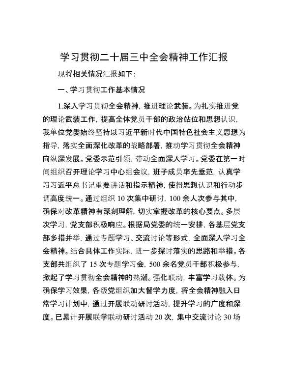 学习贯彻二十届三中全会精神工作汇报 2024-10-23 Word模板 62 购买前,请一定要先点击这里看看,欢迎持续关注,精彩模板每天推送 预览结束,本文件为word文档,一共5页,共2127字,请购买后,下载后查看 购买前,请一定要先点击这里看看,欢迎持续关注,精彩模板每天推送 资源下载下载价格29 RMBVIP免费升级VIP点击检测网盘有效后购买有任何充值和下载问题请加微信:xuexixuexi66 0 总结汇报