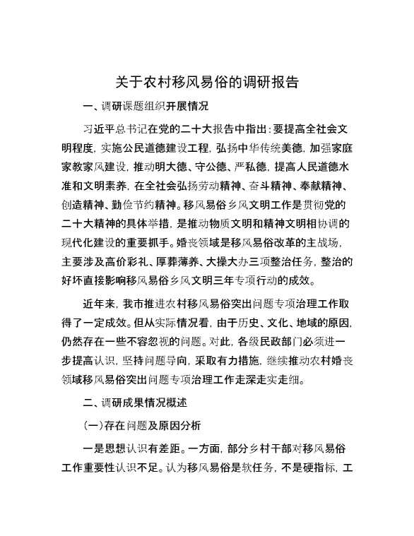 关于农村移风易俗的调研报告 2024-10-23 Word模板 61 购买前,请一定要先点击这里看看,欢迎持续关注,精彩模板每天推送 预览结束,本文件为word文档,一共5页,共2133字,请购买后,下载后查看 购买前,请一定要先点击这里看看,欢迎持续关注,精彩模板每天推送 资源下载下载价格29 RMBVIP免费升级VIP点击检测网盘有效后购买有任何充值和下载问题请加微信:xuexixuexi66 0 总结汇报